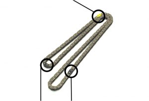 Primary-Chain GM has had different timing mark designs on both the timing and balance shaft chains. Independent of GM’s designs, Cloyes has designated the timing marks as shown in this illustrations. BACK