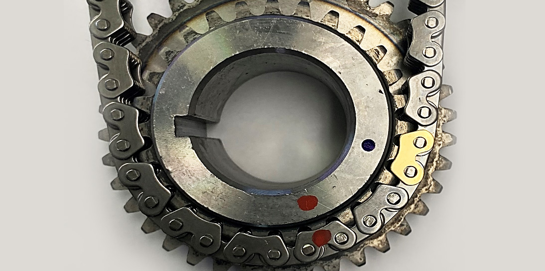 Chrysler/Dodge/Jeep – 2.4L L4: CLO# 9-0736S Consejos de instalación |diciembre 11, 2020 ATENCIÓN: La marca de sincronización del piñón del cigüeñal original y el correspondiente eslabón de cadena marcado pueden estar en una de las dos posiciones diferentes según la fecha de fabricación del motor. Con el chavetero del cigüeñal en la posición de las 9 horas: En los primeros motores de producción, la marca de sincronización está justo después de la posición de las 5. En los motores de producción posterior, la marca de sincronización es de 4 dientes en sentido contrario a las 3 horas. Los productos suministrados por Cloyes coincidirán con el diseño de la producción posterior (3 en punto) con marcas de sincronización en la rueda dentada del cigüeñal 4 dientes por encima en comparación con la producción temprana de OE. En todas las situaciones, las cadenas están marcadas adecuadamente para que coincidan con el piñón. Si se utiliza un piñón de manivela y una cadena suministrados por Cloyes, no es necesario tomar precauciones, simplemente alinear las marcas según las instrucciones. Si se sustituye sólo una cadena o sólo un piñón, hay que determinar si los componentes originales coinciden con los sustituidos. Si es necesario, se puede hacer una nueva marca de sincronización en la cadena o piñón original con un marcador de pintura. BACK