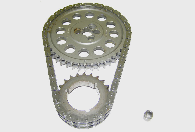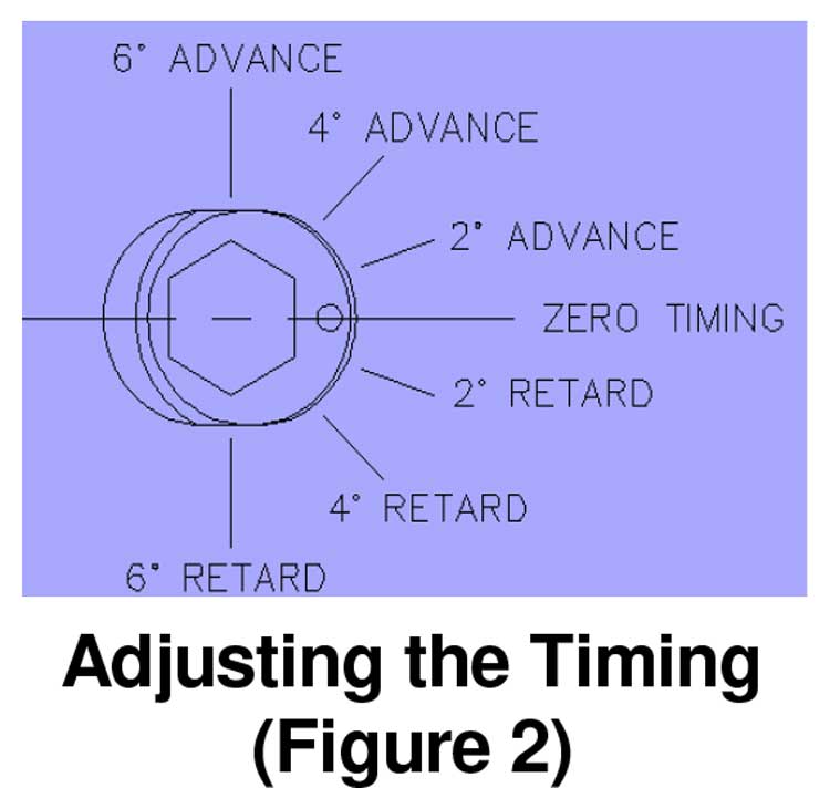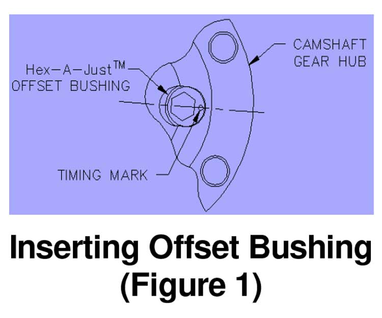 Hex-A-Just True Roller Timing Set #9-3145B (SB Chevy Factory Roller and Cam BB Crank) Instrucciones de instalación | Alto rendimiento |mayo 22, 2019 ANTES DE EMPEZAR: ¡¡¡LEA PRIMERO TODAS ESTAS INSTRUCCIONES!!! Nota: Los procedimientos de instalación que siguen suponen que el motor ha sido desmontado y limpiado como lo sería para un cambio normal de juego de distribución. NECESITARÁS: HERRAMIENTAS: Llave de vaso hexagonal de 1/4″ o hexagonal Llave de torsión Martillo Manguito para encajar sobre el cigüeñal para instalar el piñón del cigüeñal Rueda de grados (opcional, pero recomendada) SUMINISTROS: Lubricante de montaje o del árbol de levas Compuesto de bloqueo de roscas (LockTite® #271 o equiv.) Prepara el motor. Aflojar todos los balancines para que el árbol de levas pueda girar libremente. ¡Limpia todo! Asegúrese de que las superficies de montaje del motor y los componentes del juego de distribución estén lo más limpios posible. La vida de la cadena y los piñones depende de ello. Montar el piñón del cigüeñal. Seleccione el chavetero apropiado para la línea de base de la distribución del árbol de levas deseada. Recomendamos la posición de sincronización estándar, que utiliza la marca de sincronización redonda y la marca de chaveta redonda. Coloque con cuidado el piñón en el cigüeñal utilizando un manguito para proteger el piñón. Asegúrese de que la rueda dentada esté completamente asentada en el cigüeñal. Gire el cigüeñal hasta que la marca de sincronización de la rueda dentada del cigüeñal correspondiente esté en la posición 12:00. Asegúrese de que el pistón número uno está en el punto muerto superior. Inserte el casquillo de sincronización Hex-A-Just®. Inserte el casquillo desplazado (con el agujero hexagonal) en la ranura del cubo del piñón del árbol de levas. Gírelo con una llave hexagonal de 1/4″ de manera que la marca de sincronización del buje apunte hacia fuera del centro del mismo (Figura 1). El buje de sincronización ajustable Hex-AJust® es infinitamente ajustable para que usted pueda ajustar la sincronización del eje de levas de su motor EXACTAMENTE DONDE USTED QUIERE. Montar el piñón del árbol de levas. Pase la cadena por encima del piñón del árbol de levas. Alinee las marcas de sincronización del árbol de levas y del cigüeñal y haga un bucle con la cadena alrededor del piñón del cigüeñal. Levante el piñón del árbol de levas en su lugar en el árbol de levas, con el cojinete de empuje y el buje Hex-A-Just® en su lugar. Asegúrese de que la marca de sincronización se alinea con la marca de sincronización del cigüeñal y de que la pista del cojinete de empuje no se ha deslizado fuera del hombro en el cubo de la rueda dentada. Atorníllelo en su lugar utilizando los tres pernos de leva de GM existentes o equivalentes. Instale estos tornillos ligeramente sueltos. Ajuste la sincronización del árbol de levas. NO intente girar el árbol de levas con el casquillo a menos que no haya CARGA en el árbol de levas. No debe haber PRESIÓN DEL MUELLE DE LA VÁLVULA contra el árbol de levas o el casquillo Hex-A-Just® se PARTIRÁ. Asegúrese de que los tres tornillos del árbol de levas están sueltos. Para una instalación sencilla, ajuste el casquillo Hex-A-Just® al ajuste de sincronización deseado (Figura 2). Para una instalación más precisa, utilice una rueda de grados. Se recomienda encarecidamente el método de la rueda de grados. Apriete los pernos sueltos. Retire cada uno de los tres (3) pernos de montaje del piñón de leva, uno a la vez, y aplique el compuesto de bloqueo de roscas, luego apriete cada perno a 300 in-lb (25 ft-lb). Lubricar el juego de distribución. Asegúrese de que que el aceite del motor tenga un camino libre hacia el juego de distribución a través de los orificios de drenaje de aceite del valle del elevador, o a través de algún otro medio. Un juego de distribución requiere mucho aceite para sobrevivir. Antes de instalar la junta de la tapa de distribución y la tapa de distribución, vierta abundante lubricante de montaje sobre los piñones y los cojinetes. El lubricante de montaje permanecerá en los piñones hasta que el motor se ponga en marcha. Instale la tapa de la distribución y la junta. Instale la junta de la tapa de la distribución utilizando una pequeña cantidad de sellador de juntas si lo desea. Monte la tapa de la distribución e instale y apriete los diez (10) pernos de montaje. BACK
