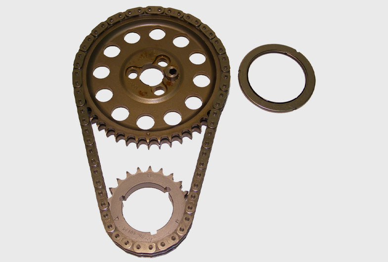Juego de distribución Hex-A-Just True Roller #9-3146B (SB Chevy Rocket con cigüeñal BB) Instrucciones de instalación | Alto rendimiento |mayo 20, 2019 ANTES DE EMPEZAR: ¡¡¡LEA PRIMERO TODAS ESTAS INSTRUCCIONES!!! Nota: Los procedimientos de instalación que siguen suponen que el motor ha sido desmontado y limpiado como lo sería para un cambio normal de juego de distribución. NECESITARÁS: HERRAMIENTAS: Llave de vaso hexagonal de 1/4″ o llave hexagonal Llave dinamométrica Martillo Manguito para encajar sobre el cigüeñal para instalar el piñón del cigüeñal Rueda de grados (opcional, pero recomendada) SUMINISTROS: Lubricante de montaje o del árbol de levas Botón de leva Cloyes (número de pieza 9-200 o 9-202) (opcional, pero recomendado). Prepara el motor. Aflojar todos los balancines para que el árbol de levas pueda girar libremente. ¡Limpia todo! Asegúrese de que las superficies de montaje del motor y los componentes del juego de distribución estén lo más limpios posible. La vida de la cadena y los rodamientos depende de ello. Montar el piñón del cigüeñal. Seleccione el chavetero apropiado para la línea de base de la distribución del árbol de levas deseada. Recomendamos la posición de sincronización estándar, que utiliza la marca de sincronización redonda y la marca de chaveta redonda. Coloque con cuidado el piñón en el cigüeñal utilizando un manguito para proteger el piñón. Asegúrese de que la rueda dentada esté completamente asentada en el cigüeñal. Gire el cigüeñal hasta que la marca de sincronización de la rueda dentada del cigüeñal correspondiente esté en la posición 12:00. Asegúrese de que el pistón número uno está en el punto muerto superior. Inserte el casquillo de sincronización Hex-A-Just®. Inserte el casquillo desplazado (con el agujero hexagonal) en la ranura del cubo del piñón del árbol de levas. Gírelo con una llave hexagonal de 1/4″ de manera que la marca de sincronización del buje apunte hacia fuera del centro del mismo (Figura 1). El buje de sincronización ajustable Hex-A-Just® es infinitamente ajustable para que usted pueda ajustar la sincronización del eje de levas de su motor EXACTAMENTE DONDE USTED QUIERE. Instale el cojinete de empuje del árbol de levas. Instale el rodamiento de agujas de empuje en la parte posterior del engranaje del árbol de levas con el lado negro del rodamiento hacia el cubo del engranaje, de modo que el lado plateado del rodamiento estará orientado hacia el bloque. Si no se instala correctamente, se producirá un grave problema de desgaste. Montar el piñón del árbol de levas. Pase la cadena por encima del piñón del árbol de levas. Alinee las marcas de sincronización del árbol de levas y del cigüeñal y haga un bucle con la cadena alrededor del piñón del cigüeñal. Levante el piñón del árbol de levas en su lugar en el árbol de levas, con el cojinete de empuje y el buje Hex-AJust® en su lugar. Asegúrese de que la marca de sincronización se alinea con la marca de sincronización del cigüeñal y de que el cojinete de empuje no se ha salido del hombro del cubo de la rueda dentada. Atorníllelo en su lugar utilizando los pernos GM existentes o equivalentes. Instale estos tornillos ligeramente sueltos. Instale el botón de leva. Instale el botón de la leva (número de pieza 9-200 o 9-202) siguiendo las instrucciones adjuntas. Ajustar la sincronización del árbol de levas. NO intente girar el árbol de levas con el casquillo a menos que no haya CARGA en el árbol de levas. No debe haber PRESIÓN DEL MUELLE DE LA VÁLVULA contra el árbol de levas o el casquillo Hex-AJust® se PARTIRÁ. Asegúrese de que los tres tornillos del árbol de levas están sueltos. Para una instalación sencilla, ajuste el casquillo Hex-A-Just® al ajuste de sincronización deseado (Figura 2). Para una instalación más precisa, utilice una rueda de grados. Se recomienda encarecidamente el método de la rueda de grados. Apriete los tornillos sueltos. Apriete los tres (3) tornillos de montaje del piñón de leva a 300 in-lb (25 ft-lb). Lubricar el juego de distribución. Asegúrese de que el aceite del motor tiene un camino libre hacia el juego de distribución a través de los agujeros de drenaje de aceite del valle del elevador, o a través de algún otro medio. Un juego de distribución requiere mucho aceite para sobrevivir. Antes de instalar la junta de la tapa de distribución y la tapa de distribución, vierta abundante lubricante de montaje sobre los piñones y los cojinetes. El lubricante de montaje permanecerá en los piñones hasta que el motor se ponga en marcha. Instale la tapa de la distribución y la junta. Instale la junta de la tapa de la distribución utilizando una pequeña cantidad de sellador de juntas si lo desea. Instale la tapa de la distribución utilizando los diez (10) pernos de montaje. Apriete estos tornillos a 160 in-lb (13 ft-lb). BACK
