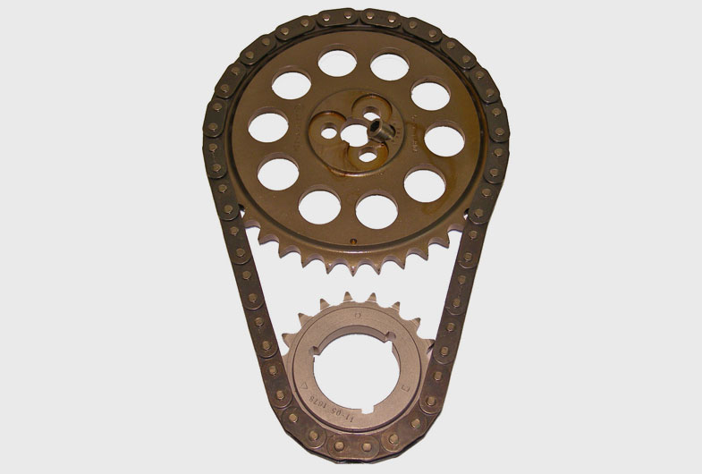 Juego de distribución Hex-A-Just True Roller #9-3149A (BB Chevy Gen VI) Instrucciones de instalación | Alto rendimiento |mayo 18, 2019 ANTES DE EMPEZAR: ¡¡¡LEA PRIMERO TODAS ESTAS INSTRUCCIONES!!! Nota: Los procedimientos de instalación que siguen suponen que el motor ha sido desmontado y limpiado como lo sería para un cambio normal de juego de distribución. NECESITARÁS: HERRAMIENTAS: Llave de vaso hexagonal de 1/4″ o llave hexagonal Llave dinamométrica Martillo Manguito para encajar sobre el cigüeñal para instalar el piñón del cigüeñal Rueda de grados (opcional, pero recomendada) SUMINISTROS: Lubricante de montaje o del árbol de levas Compuesto de bloqueo de roscas (LockTite7 #271 o equiv.) Prepara el motor. Aflojar todos los balancines para que el árbol de levas pueda girar libremente. ¡Limpia todo! Asegúrese de que las superficies de montaje del motor y los componentes del juego de distribución estén lo más limpios posible. La vida de la cadena y los piñones depende de ello. Montar el piñón del cigüeñal. Seleccione el chavetero apropiado para la línea de base de la distribución del árbol de levas deseada. Recomendamos la posición de sincronización estándar, que utiliza la marca de sincronización redonda y la marca de chaveta redonda. Coloque con cuidado el piñón en el cigüeñal utilizando un manguito para proteger el piñón. Asegúrese de que la rueda dentada esté completamente asentada en el cigüeñal. Gire el cigüeñal hasta que la marca de sincronización de la rueda dentada del cigüeñal correspondiente esté en la posición 12:00. Asegúrese de que el pistón número uno está en el punto muerto superior. Inserte el casquillo de sincronización Hex-A-Just®. Inserte el casquillo desplazado (con el agujero hexagonal) en la ranura del cubo del piñón del árbol de levas. Gírelo con una llave hexagonal de 1/4″ de manera que la marca de sincronización del buje apunte hacia fuera del centro del mismo (Figura 1). El buje de sincronización ajustable Hex-AJust® es infinitamente ajustable para que usted pueda ajustar la sincronización del eje de levas de su motor EXACTAMENTE DONDE USTED QUIERE. Montar el piñón del árbol de levas. Pase la cadena por encima del piñón del árbol de levas. Alinee las marcas de sincronización del árbol de levas y del cigüeñal y haga un bucle con la cadena alrededor del piñón del cigüeñal. Levante el piñón del árbol de levas en su lugar en el árbol de levas, con el cojinete de empuje y el buje Hex-A-Just® en su lugar. Asegúrese de que la marca de sincronización se alinea con la marca de sincronización del cigüeñal y de que la pista del cojinete de empuje no se ha deslizado fuera del hombro en el cubo de la rueda dentada. Atorníllelo en su lugar utilizando los tres pernos existentes de GM o equivalentes. Instale estos tornillos ligeramente sueltos. Ajuste la sincronización del árbol de levas. NO intente girar el árbol de levas con el casquillo a menos que no haya CARGA en el árbol de levas. No debe haber PRESIÓN DEL MUELLE DE LA VÁLVULA contra el árbol de levas o el casquillo Hex-A-Just® se PARTIRÁ. Asegúrese de que los tres tornillos del árbol de levas están sueltos. Para una instalación sencilla, ajuste el casquillo Hex-A-Just® al ajuste de sincronización deseado (Figura 2). Para una instalación más precisa, utilice una rueda de grados. Se recomienda encarecidamente el método de la rueda de grados. Apriete los tornillos sueltos. Retire cada uno de los tres (3) pernos de montaje del piñón de leva, uno a la vez, y aplique el compuesto de bloqueo de roscas, luego apriete cada perno a 300 in-lb (25 ft-lb). Lubricar el juego de distribución. Asegúrese de que el aceite del motor tiene un camino libre hacia el juego de distribución a través de los agujeros de drenaje de aceite del valle del elevador, o a través de algún otro medio. Un juego de distribución requiere mucho aceite para sobrevivir. Antes de instalar la junta de la tapa de distribución y la tapa de distribución, vierta abundante lubricante de montaje sobre los piñones y los cojinetes. El lubricante de montaje permanecerá en los piñones hasta que el motor se ponga en marcha. Instale la tapa de la distribución y la junta. Instale la tapa de la distribución y la junta utilizando una pequeña cantidad de sellador de juntas si lo desea. BACK