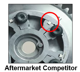 Otros actuadores de la competencia tienen juntas de paletas de nylon accionadas por resorte que son propensas al desgaste.