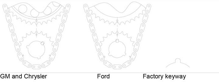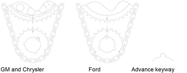 Piñones de manivela de 3 vías Instrucciones de instalación | Alto rendimiento |junio 13, 2019 El piñón del cigüeñal de 3 vías patentado por Cloyes® permite ajustar la sincronización del cigüeñal en ± 4°. Recuerde: El ángulo del árbol de levas es la mitad del ángulo del cigüeñal, por lo que el árbol de levas avanzará o se retrasará correspondientemente en ± 2°. Cambiando la sincronización de las levas, se pueden conseguir mejoras en las características del árbol de levas. Por ejemplo, retrasar la distribución de la leva aumentará la potencia a altas RPM, y avanzar la distribución de la leva aumentará el par a bajas revoluciones. Los siguientes ejemplos ilustran qué marca de sincronización se utiliza con su correspondiente chavetero: Para retrasar la sincronización del árbol de levas, utilice la marca de sincronización en la rueda dentada del cigüeñal y el chavetero de retraso que se muestra arriba. Para la sincronización especificada en fábrica, utilice la marca de sincronización Ο en la rueda dentada del cigüeñal y el chavetero de fábrica mostrado arriba. Notas: Una vez determinado el ajuste a utilizar, aconsejamos marcar (con rotulador blanco o similar) la marca de sincronización y el chavetero correspondientes. Esto hará que sean más fáciles de identificar durante la instalación. Algunos árboles de levas de alto rendimiento se rectifican con avance o retardo incorporado. En este caso, el fabricante de levas pretende que la leva se ajuste a la sincronización especificada de fábrica. Además, durante y después de la instalación, observe si hay alguna interferencia entre el juego de distribución y el bloque del motor. Si se encuentra una interferencia, elimine o rectifique esa zona del bloque para obtener una holgura adecuada. Al retirar un piñón de manivela ajustado a presión, debe utilizarse una herramienta de extracción adecuada. BACK