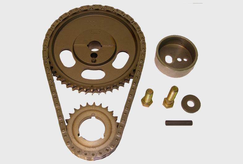 DOWNLOAD PDF Hex-A-Just True Roller Timing Set #9-3108A (Ford FE) Installation instructions | High Performance |May 29, 2019 True Roller Timing Set with Adjustable Fuel Pump Eccentric BEFORE YOU BEGIN: READ ALL OF THESE INSTRUCTIONS FIRST !!! Note: The installation procedures which follow assume that the engine has been disassembled and cleaned as it would be for a normal timing set change. YOU WILL NEED: TOOLS: Torque Wrench Degree Wheel (Optional, but Recommended) SUPPLIES: Assembly Lube or Camshaft Lube Thread Locking Compound (LockTite® #271 or equiv.) Prepare the Engine. Loosen all rocker arms so that the camshaft can rotate freely. Clean everything! Make sure that the engine mounting surfaces and timing set components are as clean as possible. The life of the chain and sprockets depends on it. Install the Dowel Pin. If your engine originally used the two-piece fuel pump eccentric and the short dowel pin, remove the old dowel pin. Press the new dowel pin into place, making sure that it is fully seated in the camshaft. Note! Some older engines have a spacer on the camshaft and a camshaft sprocket which is flat on the back. If your engine has one of these spacers, remove and discard it. The new camshaft sprocket has the spacer machined in. Align the Engine. Rotate the crankshaft until the number one piston is at top dead center. The crankshaft key should be pointing straight up. Rotate the camshaft until the dowel pin is pointing straight down. Assemble the Timing Set. Select the appropriate keyway and timing mark on the crankshaft sprocket for the camshaft timing baseline desired. We recommend the Standard Timing position, which uses the round timing mark and round keyway. Loop the chain over the camshaft sprocket. Align the camshaft and crankshaft timing marks and loop the chain around the crankshaft sprocket. Lift the sprocket and chain assembly into place on the camshaft and crankshaft. Slide the crankshaft sprocket onto the crankshaft while sliding the camshaft sprocket onto the camshaft. Make sure that the sprockets are fully seated on their shafts. Install the Hex-A-Just® Fuel Pump Eccentric. Install the eccentric onto the camshaft sprocket making sure that the dowel pins fully engage the proper holes in the eccentric. Install the proper bolt and washer (supplied) and thread it all the way in, but leave it slightly loose. Check for clearance between the washer and the dowel pin. If the washer touches the pin, remove the pin and grind one end until the pin will no longer protrude through the eccentric, then re-install the dowel pin. The Hex-A-Just® Adjustable Fuel Pump Eccentric is infinitely adjustable so you can fine adjust your engine’s CAMSHAFT TIMING to EXACTLY WHERE YOU WANT IT. Adjust the Camshaft Timing. Do NOT try to turn the camshaft with the eccentric unless there is NO LOAD on the camshaft. Make sure that the camshaft bolt is LOOSE. For a simple installation, adjust the Hex-A-Just® Fuel Pump Eccentric to the desired timing setting (Figure 1). For a more accurate installation, use a degree wheel. The degree wheel method is strongly recommended. Torque Loose Bolt. Apply a generous amount of Thread Locking Compound to the Camshaft Sprocket Mounting Bolt. Torque the Camshaft Sprocket Mounting Bolt to 40-45 ft-lb. Lubricate the Timing Set. Make sure that the engine oil has a clear path to the timing set through the lifter valley oil drain-back holes, or through some other means. A timing set requires plenty of oil to survive. Before installing the timing cover gasket and timing cover, pour plenty of assembly lube over the sprockets and bearings. Assembly lube will stay on the sprockets until the engine is started. Install the Timing Cover and Gasket. Install the timing cover gasket using a small amount of gasket sealer if desired. Mount the timing cover and the rest of the engine accessories according to the manufacturer’s procedures. DOWNLOAD PDF BACK