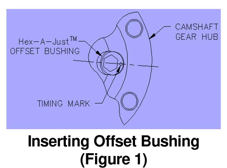 DOWNLOAD PDF Hex-A-Just True Roller Timing Set #9-3146A (SB Chevy Rocket) Installation instructions | High Performance |May 21, 2019 BEFORE YOU BEGIN: READ ALL OF THESE INSTRUCTIONS FIRST !!! Note: The installation procedures which follow assume that the engine has been disassembled and cleaned as it would be for a normal timing set change. YOU WILL NEED: TOOLS: 1/4″ Hex Bit Socket or Hex Wrench Torque Wrench Hammer Sleeve to fit over crankshaft for installing Crankshaft Sprocket Degree Wheel (Optional, but Recommended) SUPPLIES: Assembly Lube or Camshaft Lube Cloyes Cam Button (Part Number 9-200 or 9-202) (Optional, but Recommended). Prepare the Engine. Loosen all rocker arms so that the camshaft can rotate freely. Clean everything! Make sure that the engine mounting surfaces and timing set components are as clean as possible. The life of the chain and bearings depends on it. Mount the Crankshaft Sprocket. Select the appropriate keyway for the camshaft timing baseline desired. We recommend the Standard Timing position, which used the round timing mark and round keyway mark. Carefully tap the sprocket onto the crankshaft using a sleeve to protect the sprocket. Make sure that the sprocket is fully seated on the crankshaft. Rotate the crankshaft until the appropriate crankshaft sprocket timing mark is in the 12:00 position. Make sure that the number one piston is at top dead center. Insert the Hex-A-Just® Timing Bushing. Insert the offset bushing (with the Hex hole) into the slot in the camshaft sprocket hub. Rotate it with a 1/4″ Hex Wrench so that the timing mark on the bushing points away from the center of the hub (Figure 1). The HexA-Just® Adjustable Timing Bushing is infinitely adjustable so you can fine adjust your engine’s CAMSHAFT TIMING to EXACTLY WHERE YOU WANT IT. Install the Camshaft Thrust Bearing. Install the Thrust Needle Bearing on the back side of the camshaft gear with the black side of the bearing facing gear hub, so the silver side of the bearing will be facing the block. Failure to install correctly will cause a severe wear issue! Mount the Camshaft Sprocket. Loop the chain over the camshaft sprocket. Align the camshaft and crankshaft timing marks and loop the chain around the crankshaft sprocket. Lift the camshaft sprocket into place on the camshaft, with the Thrust Bearing and Hex-AJust® Bushing in place. Be sure that the timing mark aligns with the crankshaft timing mark, and that the Thrust Bearing has not slipped off of the shoulder on the sprocket hub. Bolt it in place using the existing GM bolts or equivalent. Install these bolts slightly loose. Install the Cam Button. Install the cam button (Part Number 9-200 or 9-202) using the instructions enclosed with it. Adjust the Camshaft Timing. Do NOT try to turn the camshaft with the bushing unless there is NO LOAD on the camshaft. There must be NO VALVE SPRING PRESSURE against the camshaft or the Hex-AJust® bushing will SPLIT. Make sure that the three camshaft bolts are LOOSE. For a simple installation, adjust the Hex-A-Just® bushing to the desired timing setting (Figure 2). For a more accurate installation, use a degree wheel. The degree wheel method is strongly recommended. Torque Loose Bolts. Torque the three (3) Cam Sprocket mounting bolts to 300 in-lb (25 ft-lb). Lubricate the Timing Set. Make sure that the engine oil has a clear path to the timing set through the lifter valley oil drain-back holes, or through some other means. A timing set requires plenty of oil to survive. Before installing the timing cover gasket and timing cover, pour plenty of assembly lube over the sprockets and bearings. Assembly lube will stay on the sprockets until the engine is started. Install the Timing Cover and Gasket. Install the timing cover gasket using a small amount of gasket sealer if desired. Install the timing cover using the ten (10) mounting bolts. Torque these bolts to 160 in-lb (13 ft-lb). DOWNLOAD PDF BACK
