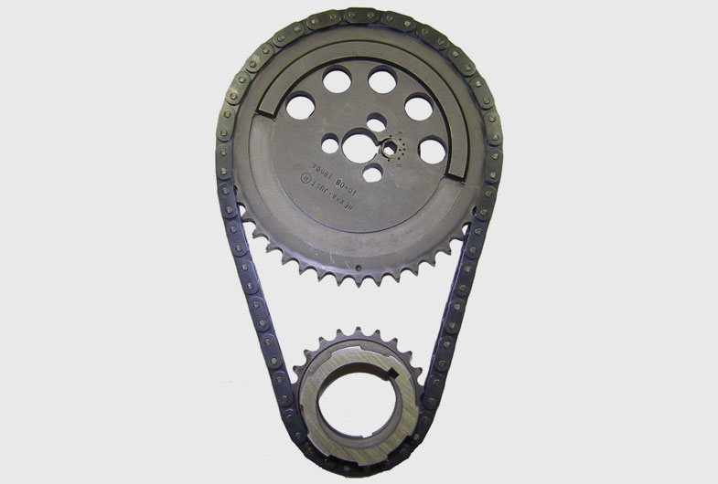 DOWNLOAD PDF Hex-A-Just True Roller Timing Set #9-3158A (Chevy LS1-2-6 Single Roller) Installation instructions | High Performance |May 14, 2019 BEFORE YOU BEGIN: READ ALL OF THESE INSTRUCTIONS FIRST !!! Note: The installation procedures which follow assume that the engine has been disassembled and cleaned as it would be for a normal timing set change. YOU WILL NEED: TOOLS: 1/4″ Hex Bit Socket or Hex Wrench Torque Wrench Hammer Sleeve to fit over crankshaft for installing Crankshaft Sprocket Degree Wheel (Optional, but Recommended) SUPPLIES: Assembly Lube or Camshaft Lube Prepare the Engine. Loosen all rocker arms so that the camshaft can rotate freely. Clean everything! Make sure that the engine mounting surfaces and timing set components are as clean as possible. The life of the chain and bearings depends on it. Mount the Crankshaft Sprocket. Select the appropriate keyway for the camshaft timing baseline desired. We recommend the Standard Timing position, which used the round timing mark and round keyway mark. Carefully tap the sprocket onto the crankshaft using a sleeve to protect the sprocket. Make sure that the sprocket is fully seated on the crankshaft. Rotate the crankshaft until the appropriate crankshaft sprocket timing mark is in the 12:00 position. Make sure that the number one piston is at top dead center. Insert the Hex-A-Just® Timing Bushing. Insert the offset bushing (with the Hex hole) into the slot in the camshaft sprocket hub. Rotate it with a 1/4″ Hex Wrench so that the timing mark on the bushing points away from the center of the hub (Figure 1). The Hex-A-Just® Adjustable Timing Bushing is infinitely adjustable so you can fine adjust your engine’s CAMSHAFT TIMING to EXACTLY WHERE YOU WANT IT. Install the Camshaft Thrust Bearing. Install the Thrust Needle Bearing on the back side of the camshaft gear hub with the Black Side of the Bearing Toward the block. Failure to do so will cause a severe wear issue! Mount the Camshaft Sprocket. Loop the chain over the camshaft sprocket. Align the camshaft and crankshaft timing marks and loop the chain around the crankshaft sprocket. Lift the camshaft sprocket into place on the camshaft, with the Hex-A-Just® Bushing in place. Be sure that the timing mark aligns with the crankshaft timing mark. Start the camshaft bolts to hold the cam sprocket in place, but leave the bolts slightly loose. Adjust the Camshaft Timing. Do NOT try to turn the camshaft with the bushing unless there is NO LOAD on the camshaft. There must be NO VALVE SPRING PRESSURE against the camshaft or the Hex-A-Just® bushing will SPLIT. Make sure that the three camshaft bolts are LOOSE. For a simple installation, adjust the Hex-A-Just® bushing to the desired timing setting (Figure 2). For a more accurate installation, use a degree wheel. The degree wheel method is strongly recommended. Torque Loose Bolts. Torque the three (3) Cam Sprocket mounting bolts to 300 in-lb (25 ft-lb). Lubricate the Timing Set. Make sure that the engine oil has a clear path to the timing set through the lifter valley oil drain-back holes, or through some other means. A timing set requires plenty of oil to survive. Before installing the timing cover gasket and timing cover, pour plenty of assembly lube over the sprockets and bearings. Assembly lube will stay on the sprockets until the engine is started. Install the Oil Pump Driver. Using a sleeve, Carefully press the oil pump driver onto the nose of the crankshaft until the driver is in hard contact with the crankshaft sprocket. Timing Cover and Gasket. Install the timing cover gasket using a small amount of gasket sealer if desired. Mount the timing cover and install the mounting bolts. Torque these bolts as specified by the manufacturer. DOWNLOAD PDF BACK